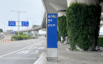 STEP 04. Arrive at the Nest Hotel Shuttle Bus sign and board the bus (Approx. 10-15 minutes to the hotel)