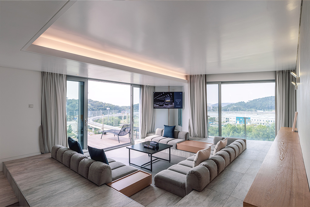 The living room, separated from the room, is composed of a spacious space and comfortable sofas for relaxation.