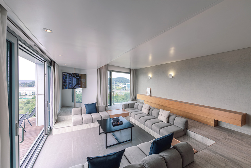 Panorama Suites located at the end of the 8th floor corridor provide the best view to take in the wide view of the western sea.<br />The living room, separated from the room, is composed of a spacious space and comfortable sofas for relaxation.<br />A special amenity for suite guests will help you truly rest.