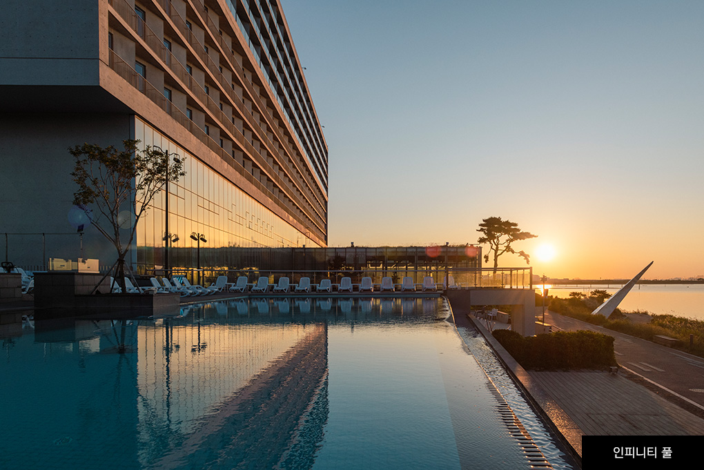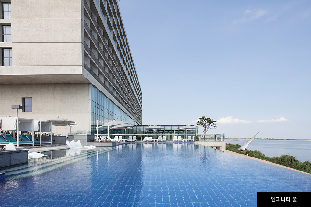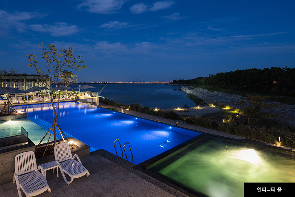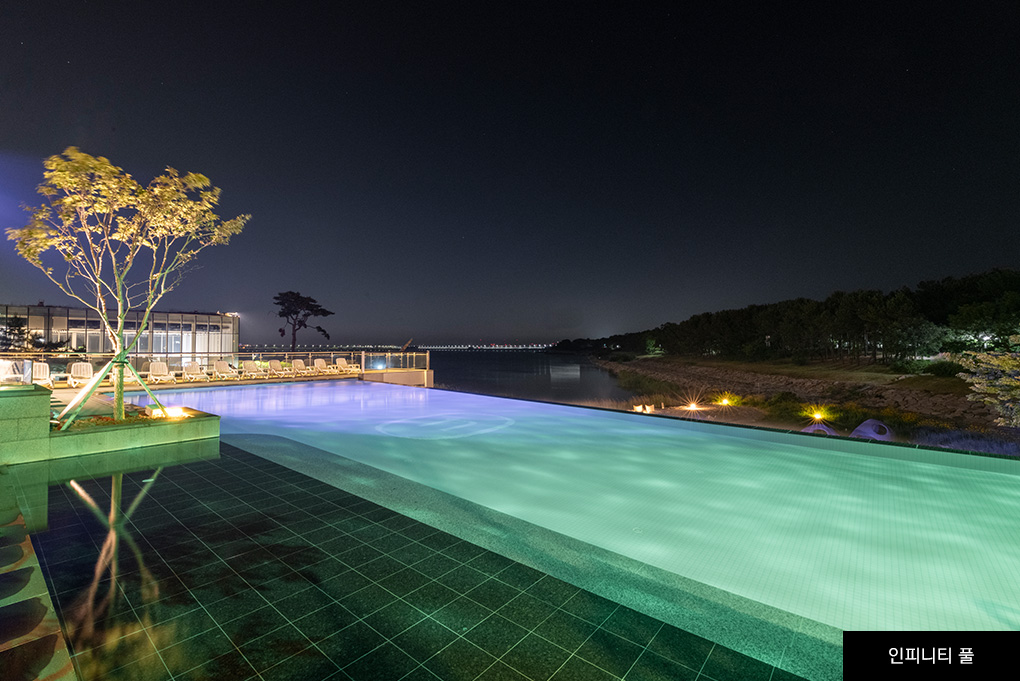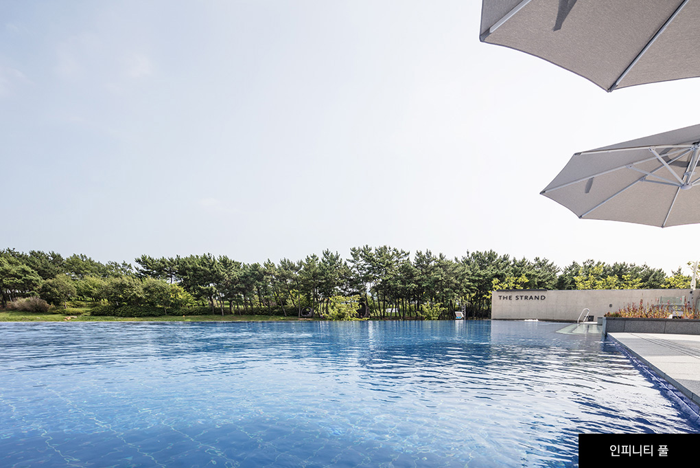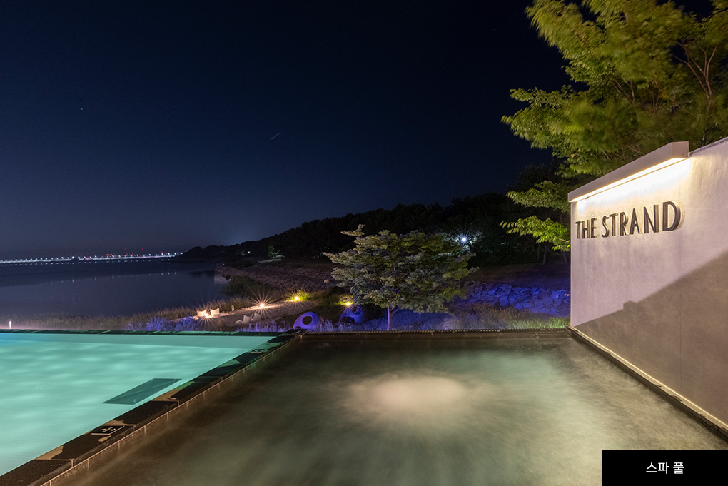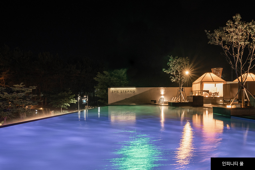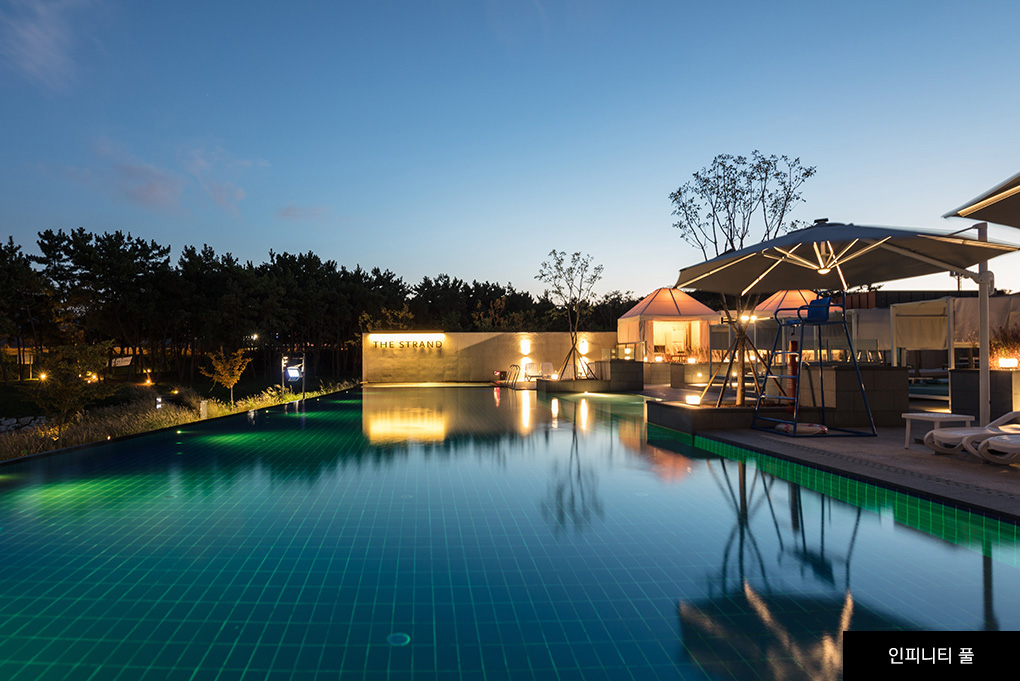 Strand, which means beach in German, is the Infinity Spa Pool that is available all year round. A hot water pool which adjusts the water temperature to suit the weather each day and an outdoor Finland sauna is available. Please experience the superb view, spectacular glow and exotic mood at the Infinity Pool facing the West Sea.